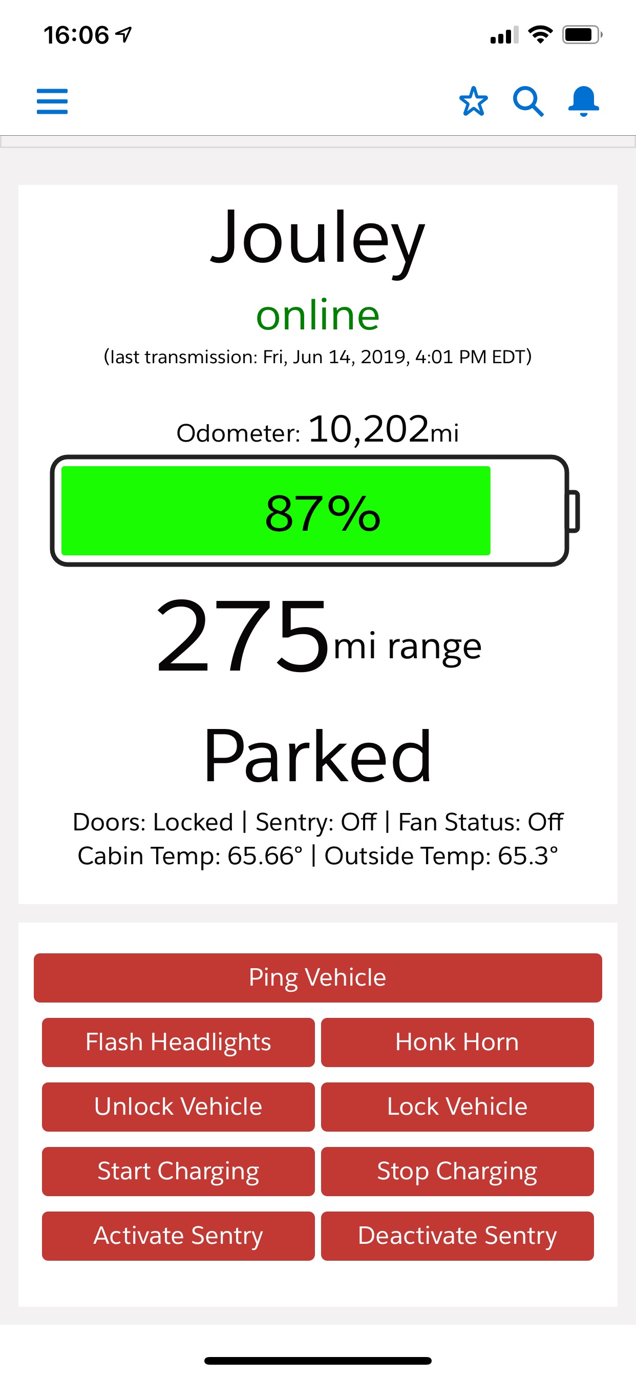 Using this, if you know the Salesforce platform really well, you can use this as a foundation to make your own apps. I’ve made some of the functions generic (ie ping vehicle, send a command to the vehicle, activate sentry, etc) in invokable actions, so you can use that to make your own app/workflow.